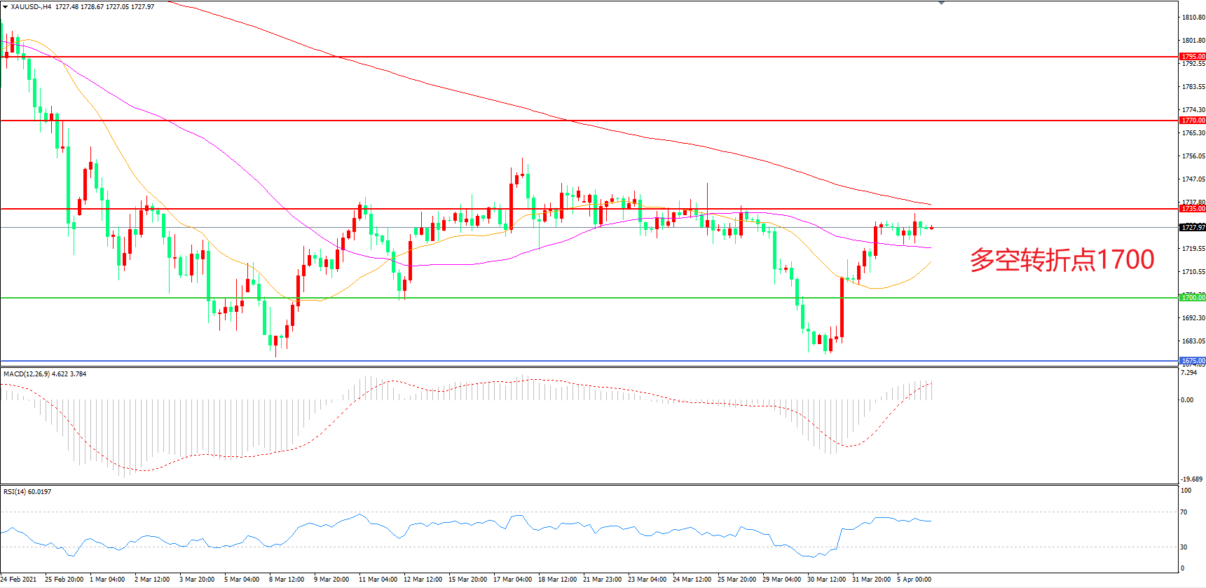 多空转折点:1700.00