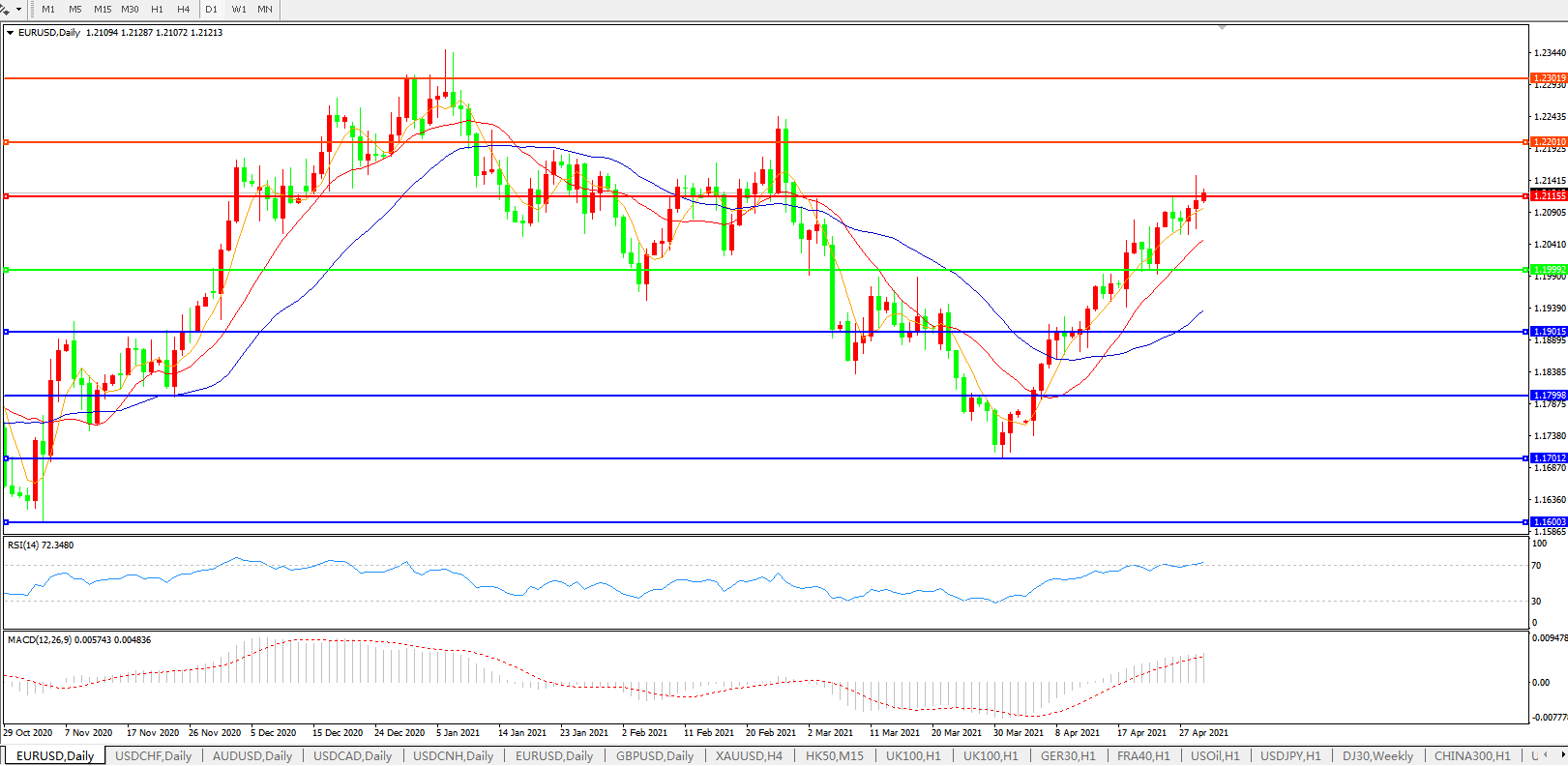 欧元兑美元EURUSD   日线图: