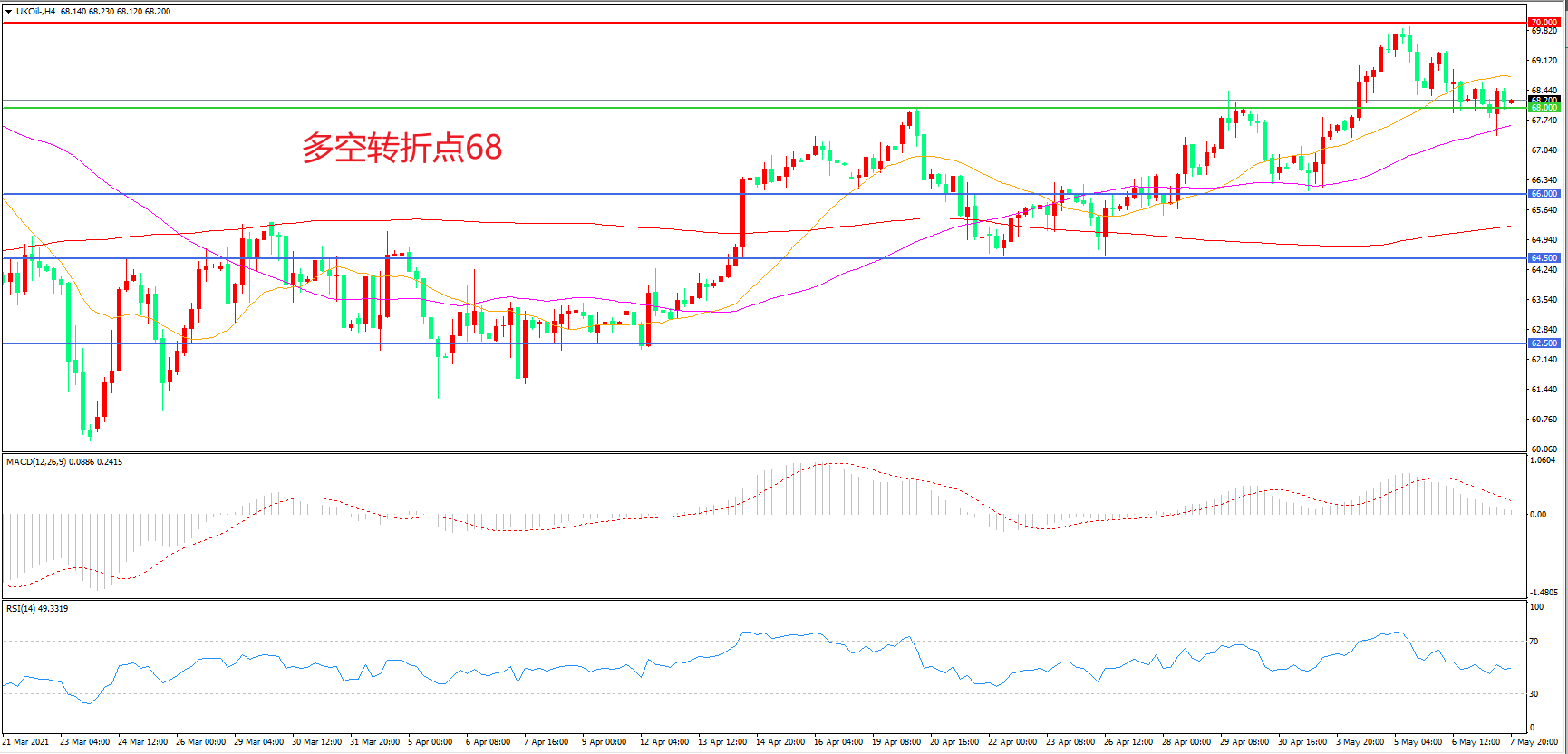 多空转折点:68.00