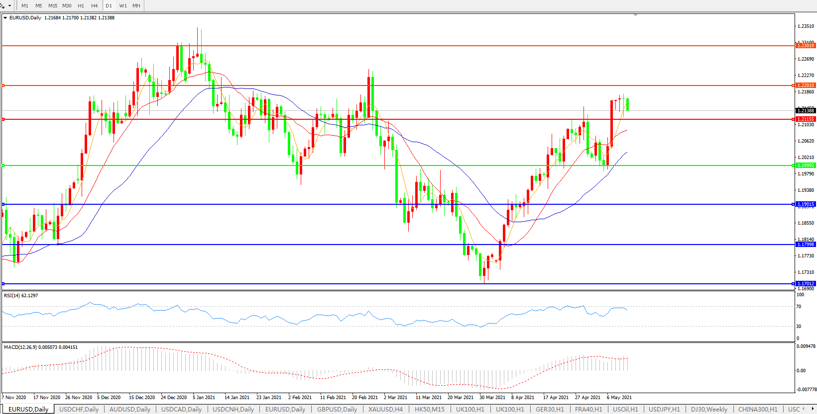 欧元兑美元EURUSD   日线图: