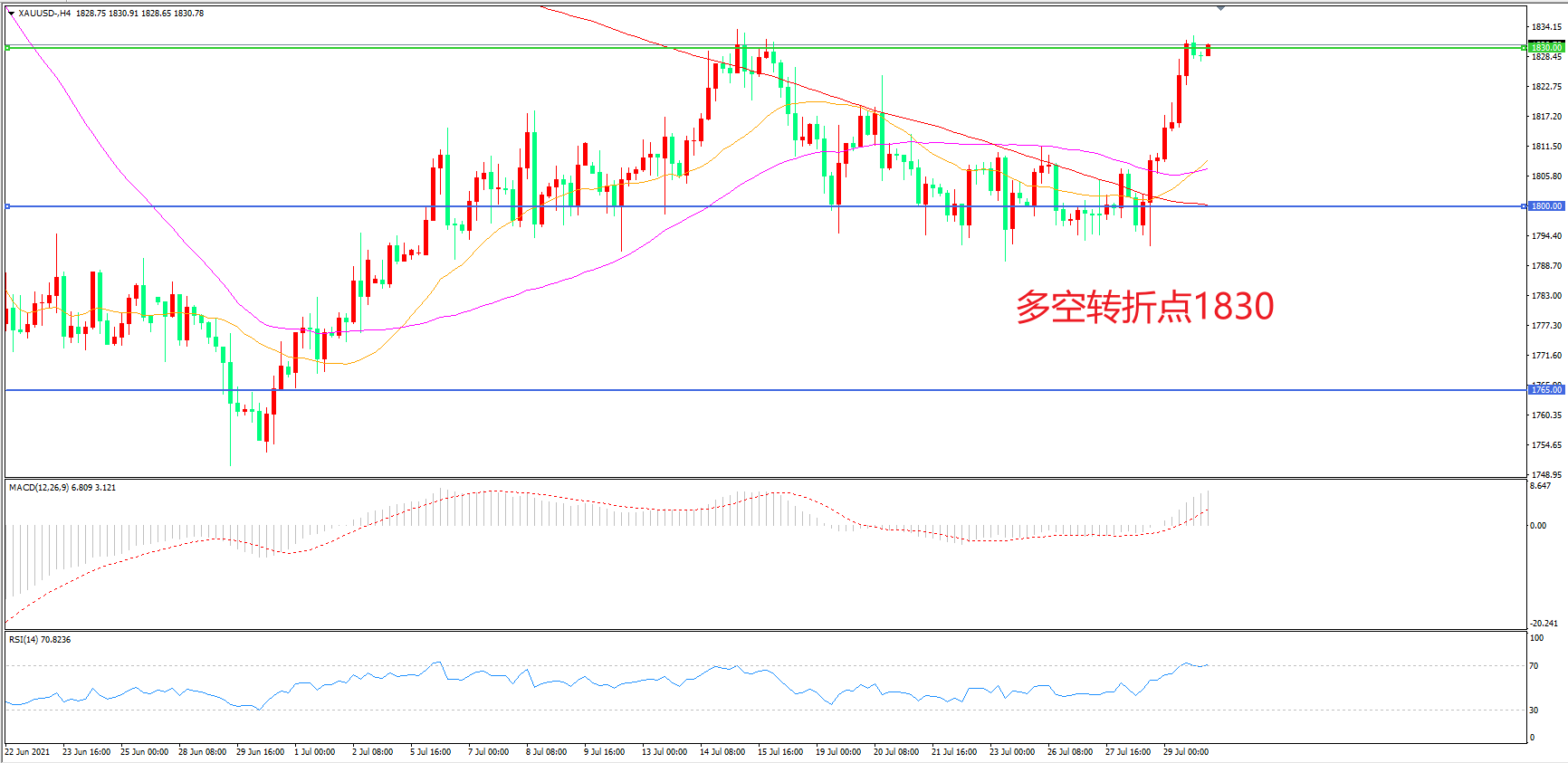 交易策略:  在1830.00之上看涨,目标1860.00        1900.00
