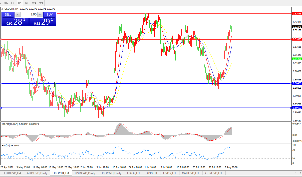美元兑瑞郎USDCHF    4小时图: