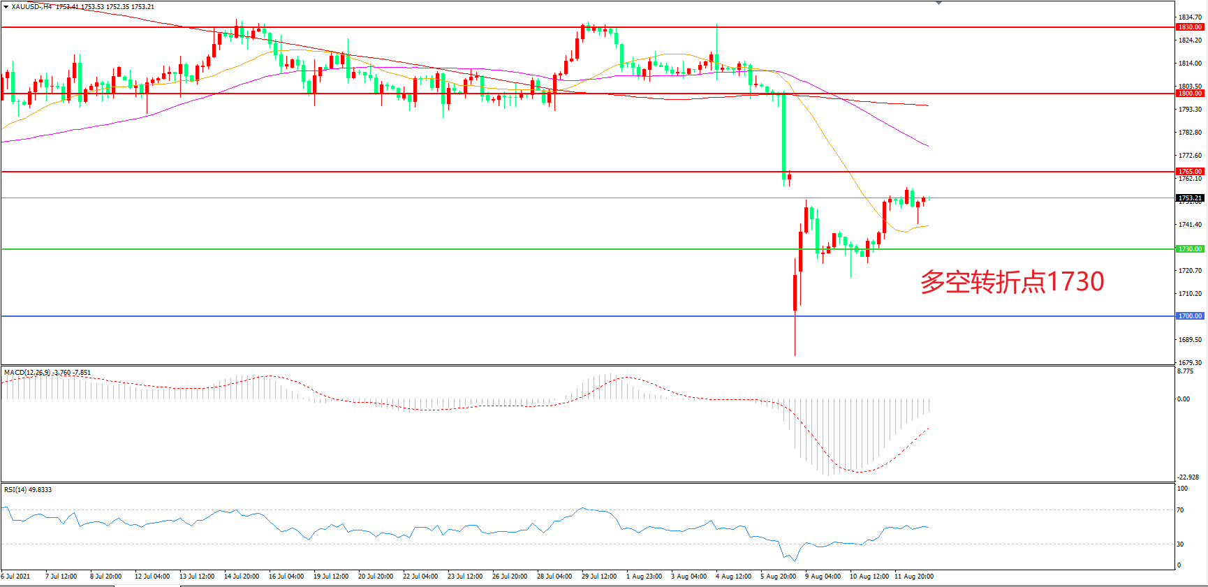 多空转折点:1730.00