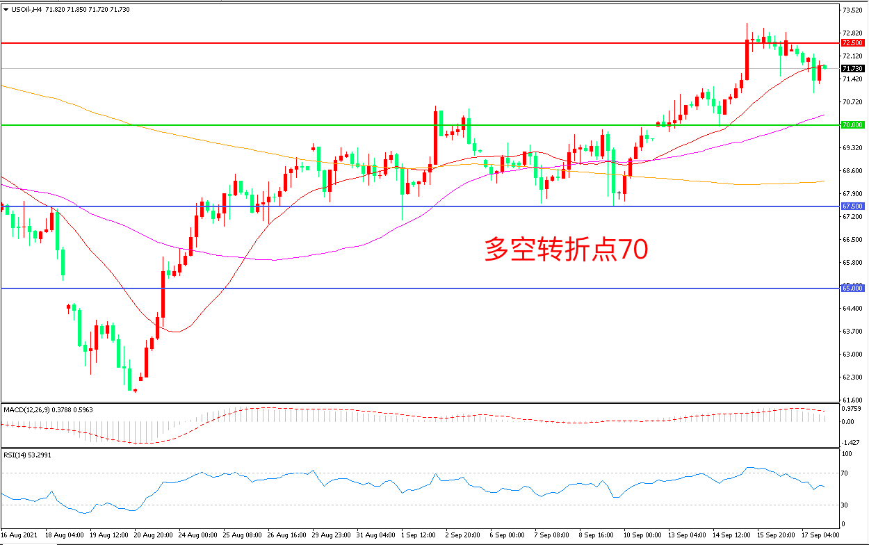交易策略:在70.00之上看涨,目标72.50                75.00