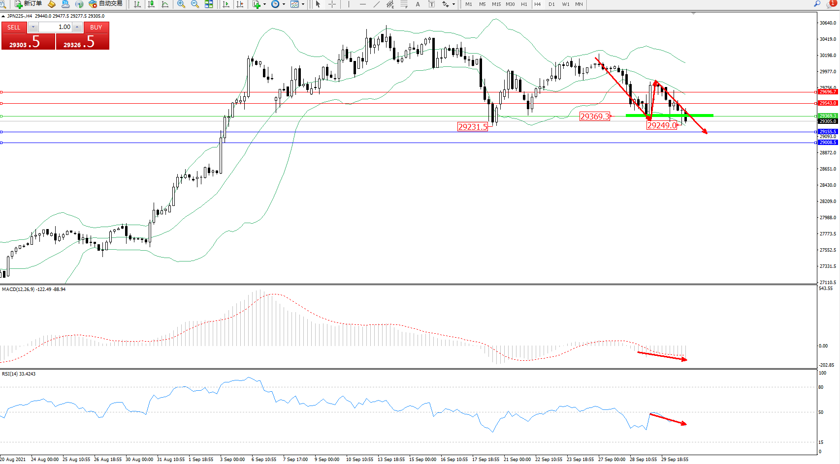 日经指数JPN225——4小时K线图显示: