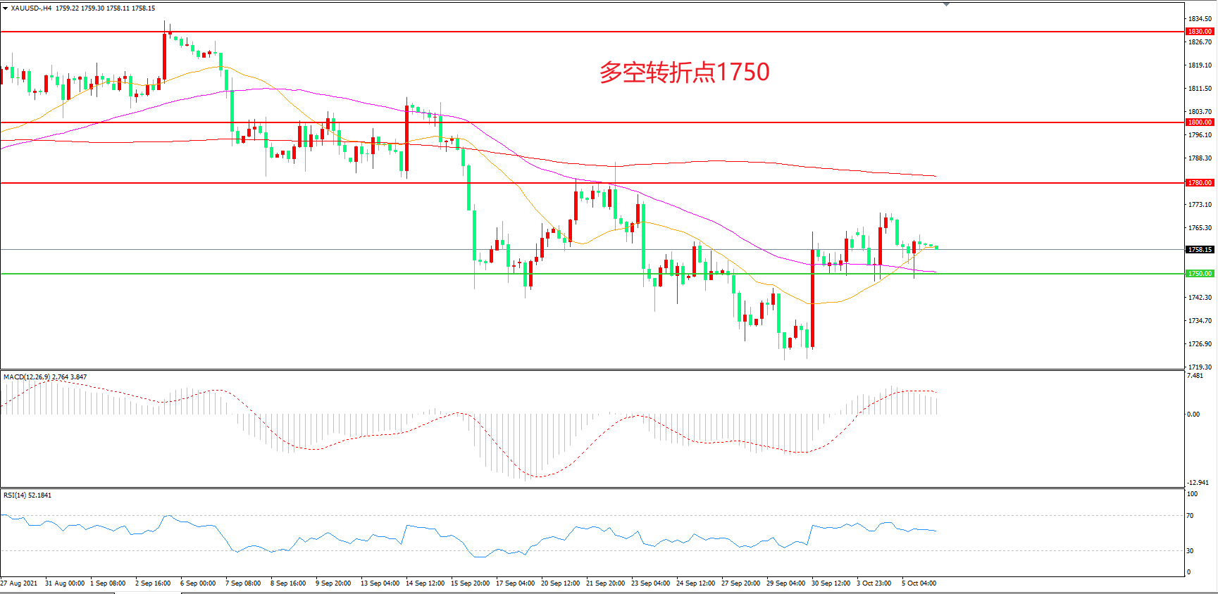 周二(10月5日),美国最新公布的ISM非制造业表现强于预期,美元指数迅速突破94关口,随着美元和美债收益率上升,现货黄金承压回落,收报1759.66美元/盎司。本周,投资者密切关注定于周五公布的非农就业报告,因该数据可能左右美联储购债缩减计划。在数据公布前,金价呈现区间震荡的概率较大。