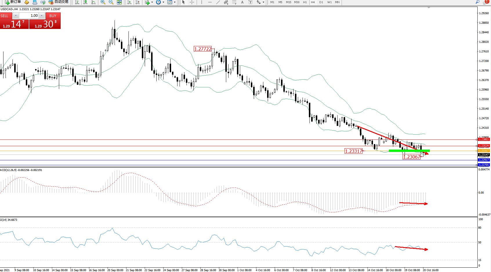 美元加元USDCAD——日K线图显示: