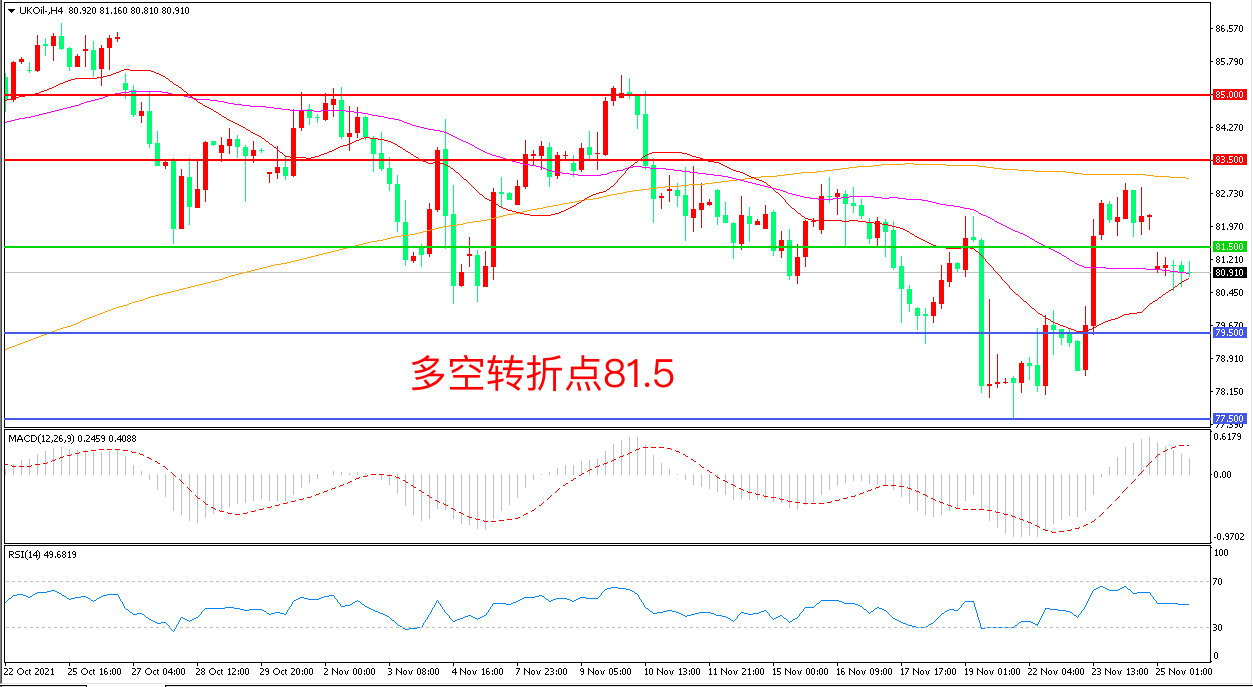 备选策略:在81.50之下看跌,目标79.50                 77.50