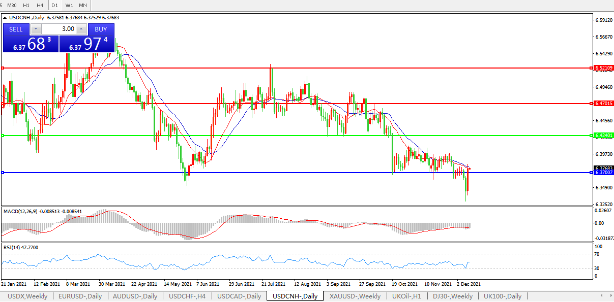 备选策略:在6.4240之上,看涨,目标价位为6.4700,然后为6.5210。