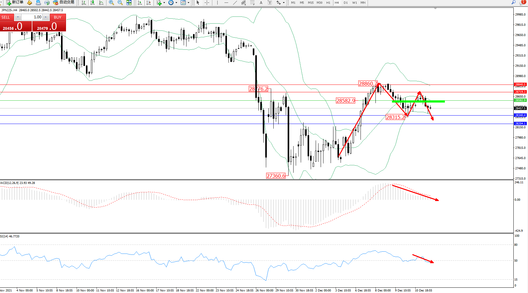 交易策略:28582下方看跌,目标28340、28204