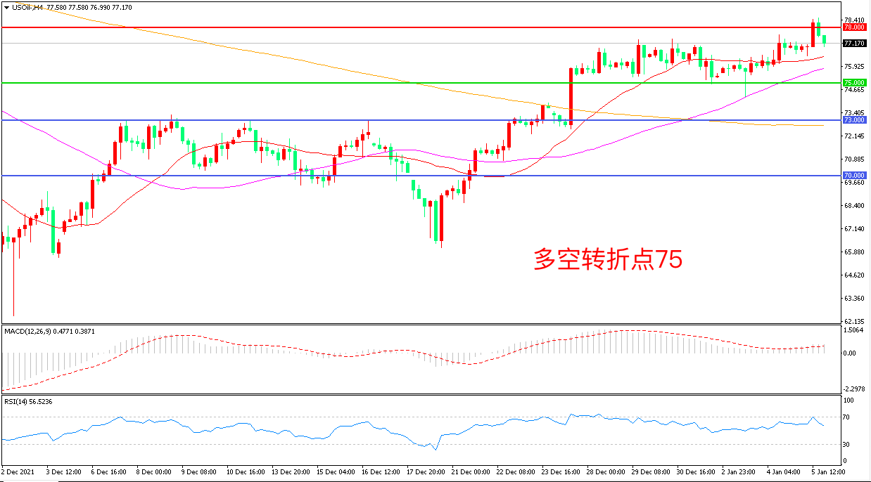 交易策略:在75.00之上看涨,目标77.50 80.00