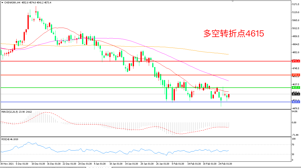 周一(2月28日),俄乌战争持续,欧美祭出“金融核弹”,上证指数低开下挫,随后震荡回升,沪深300延续低位震荡,收报4573.4点。两市成交额9400亿,北向资金净买入20亿。体来看,考虑到财报、美联储议息等多重事件的叠加,沪深300还会有反复,但随着两会开启,在稳增长的大背景下,指数风险有限,A股有可能逐步向相对均衡的阶段过渡。