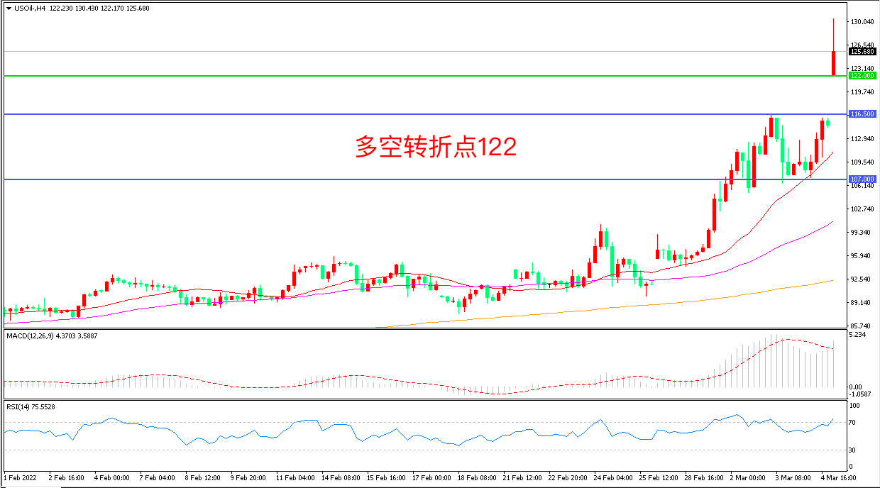交易策略:在122.00之上看涨,目标125.00           128.00