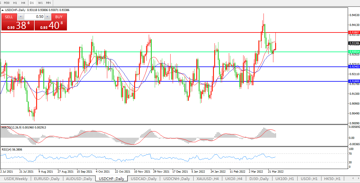 交易策略:0.9300上方看涨,目标0.9380、0.9500