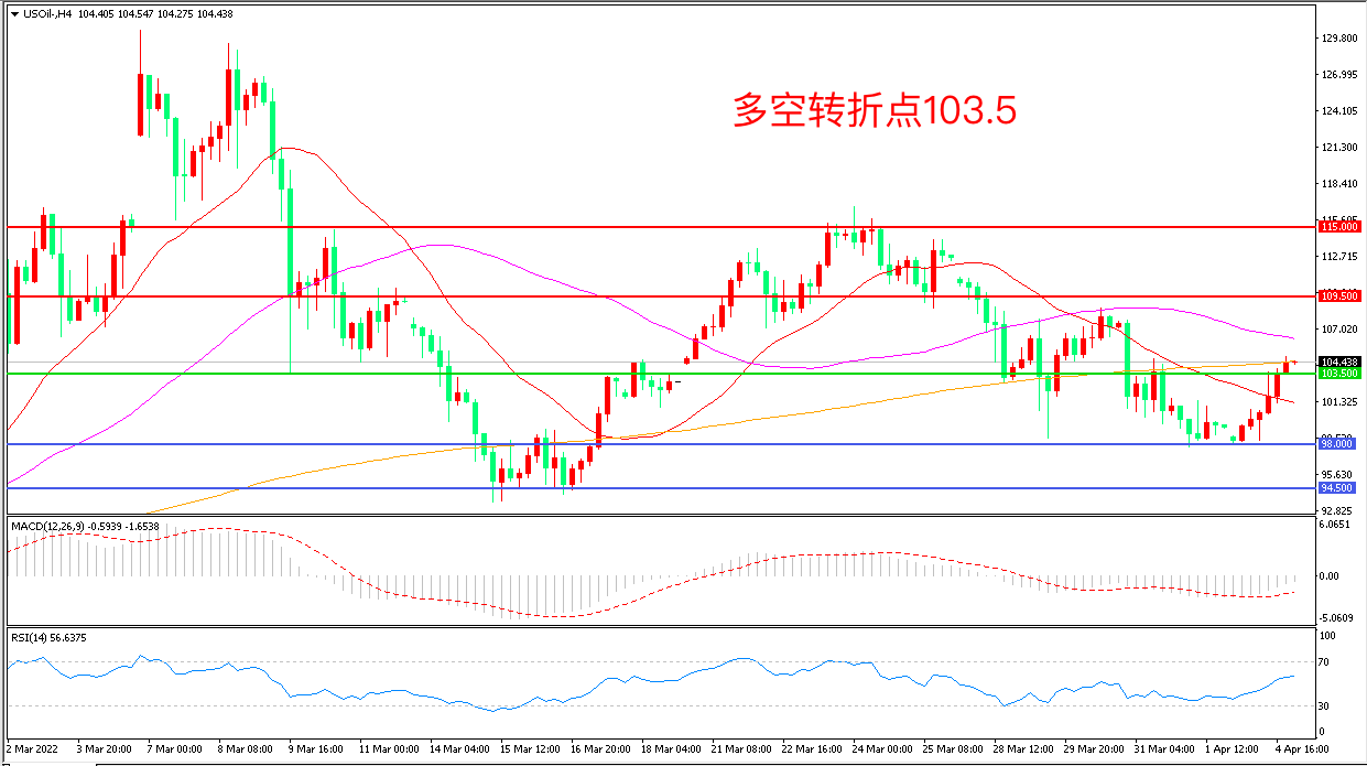 交易策略:在103.50之下看跌,目标109.50           115.00
