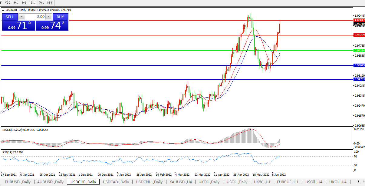 担忧联储激情加息,美元兑瑞郎持续上攻
