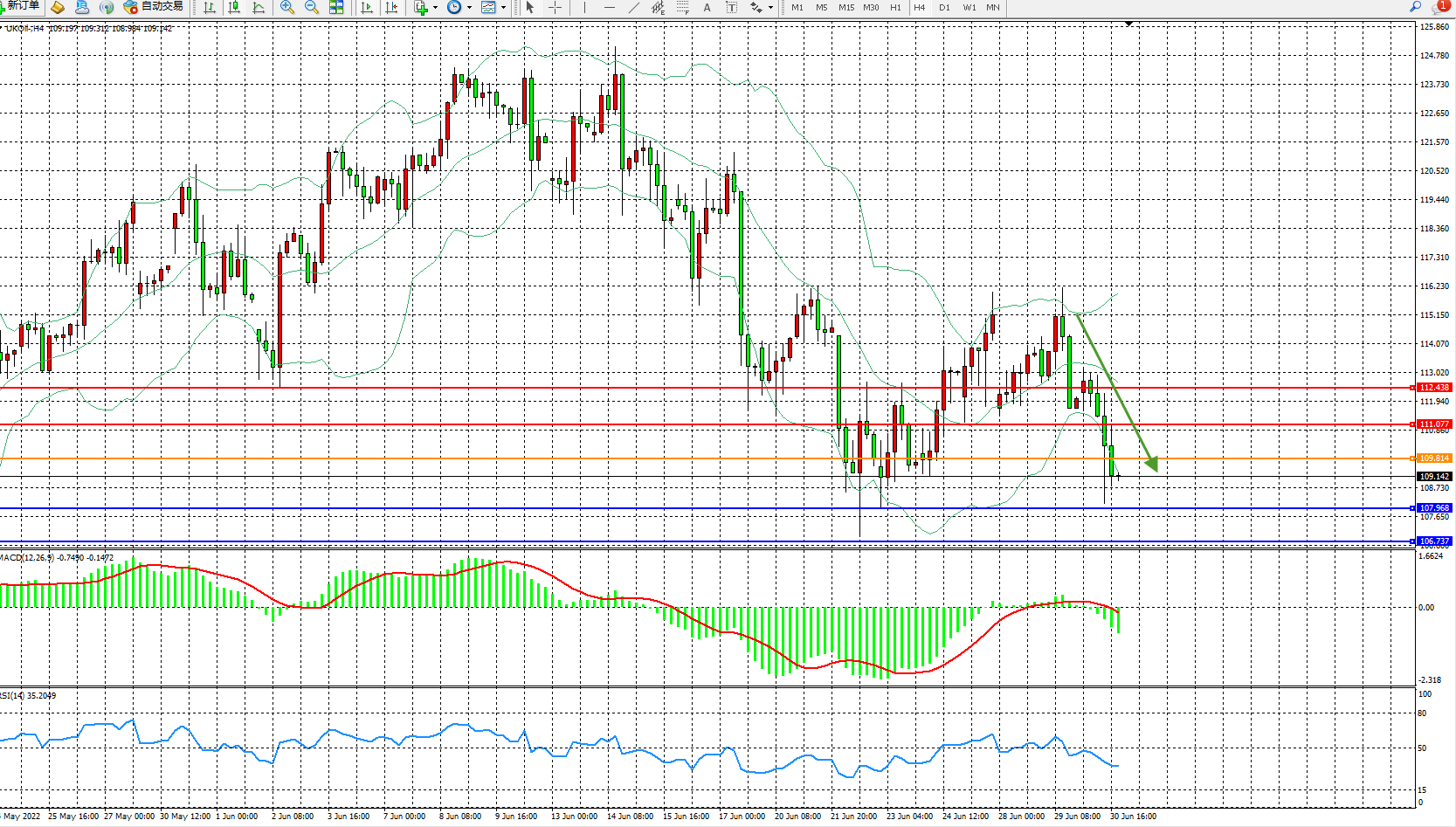 布油UKOil——4小时K线图显示: