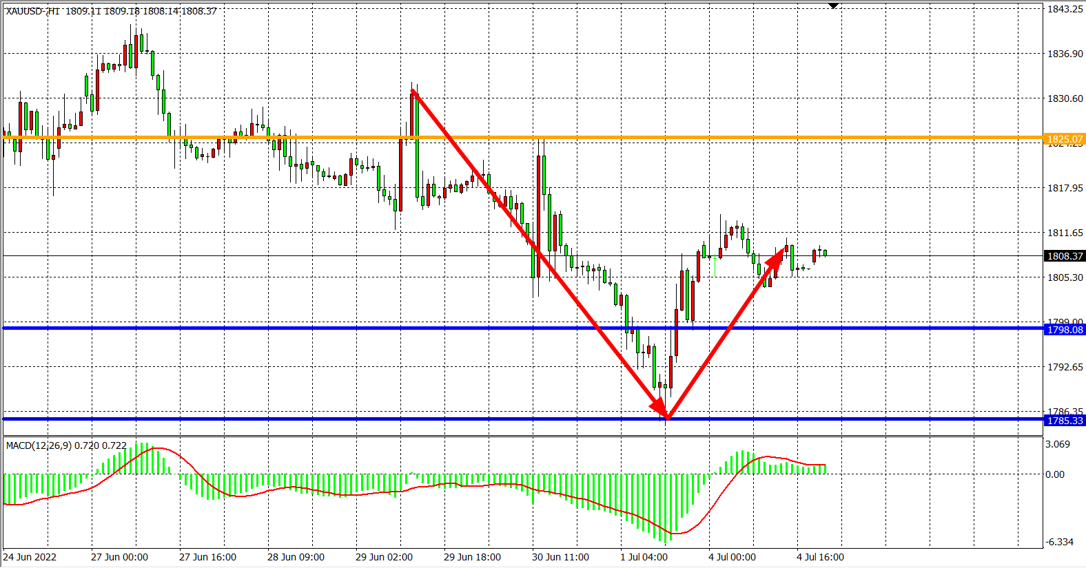 现货黄金XAUUSD 1小时图