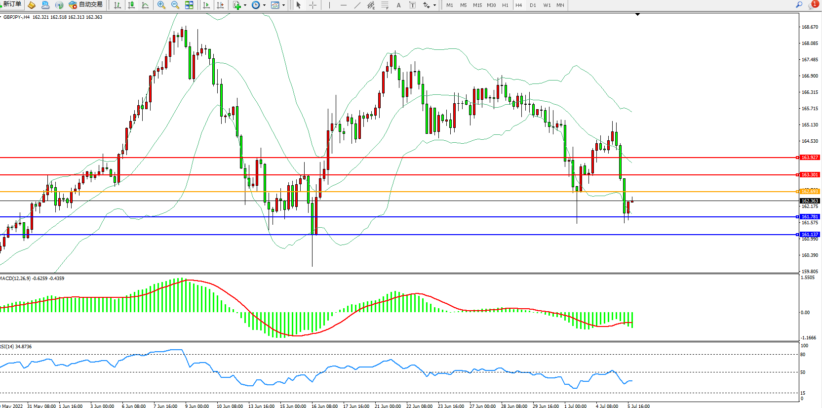 交易策略:162.693下方看跌,目标161.781、161.137