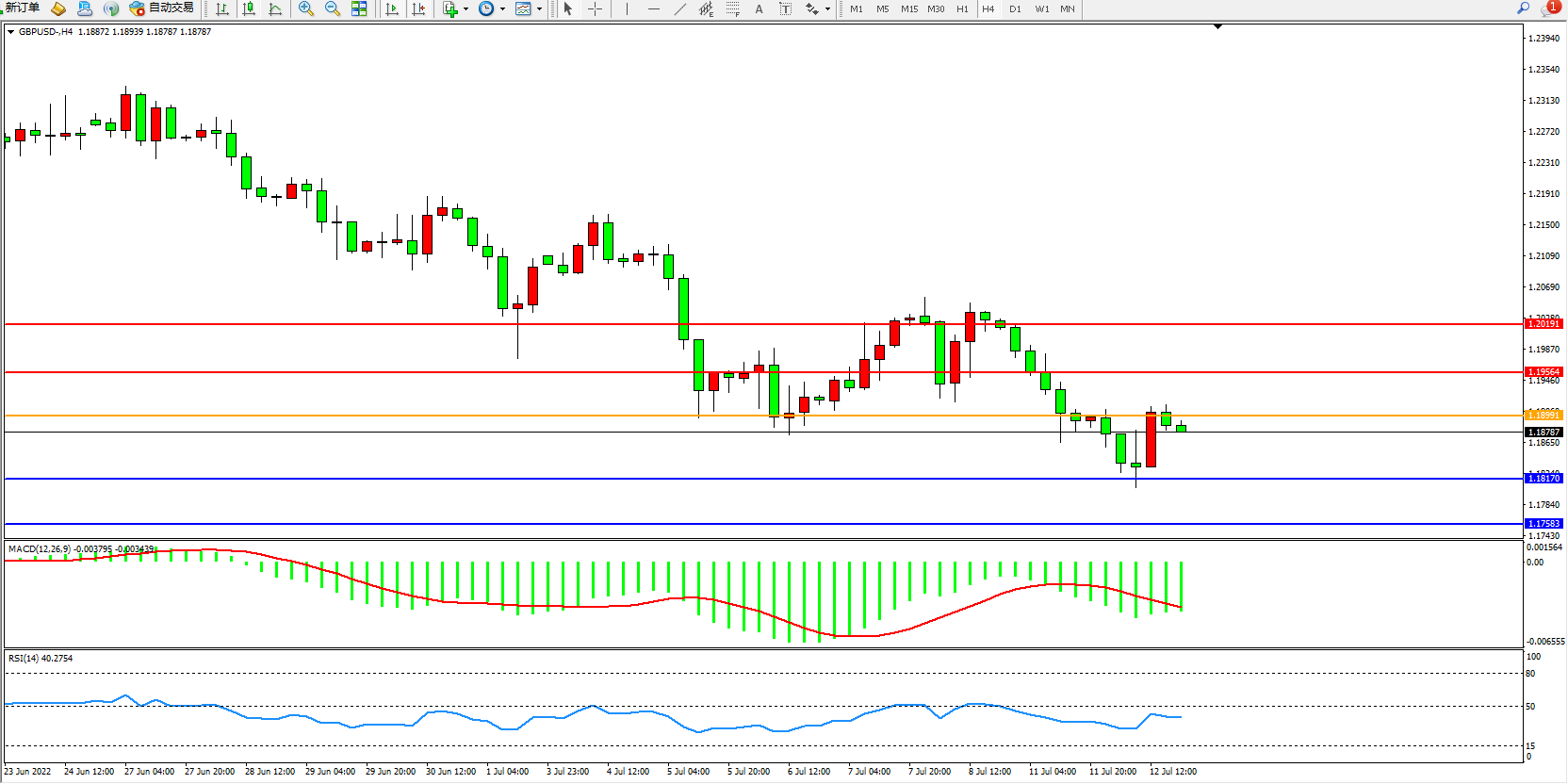 交易策略:1.18991下方看跌,目标1.18170、1.17583