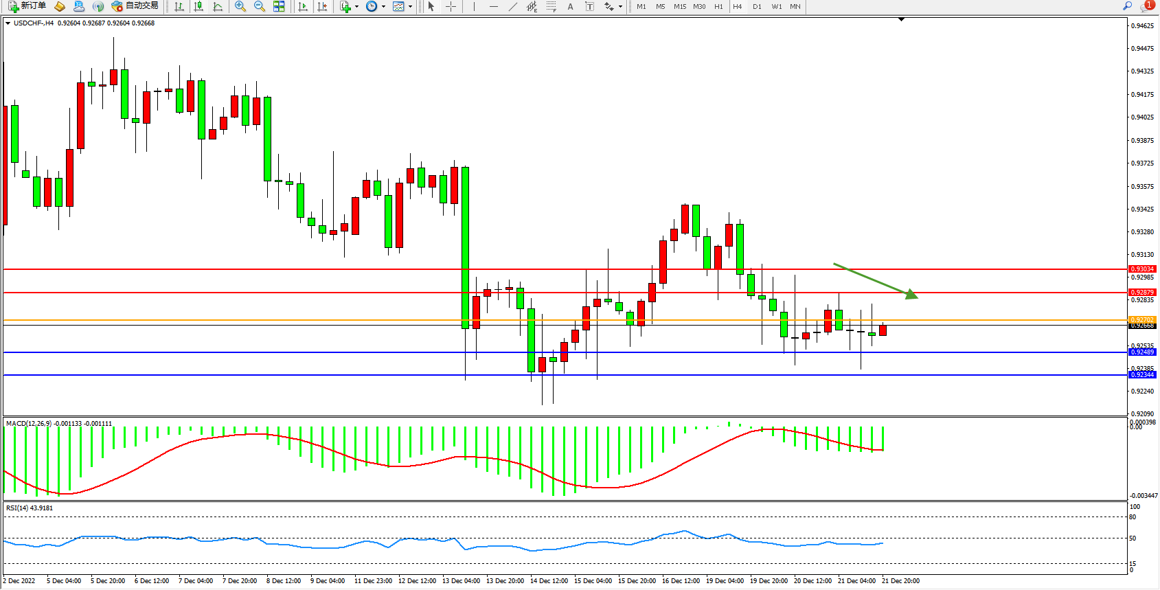美元瑞郎USDCHF——4小时K线图显示: