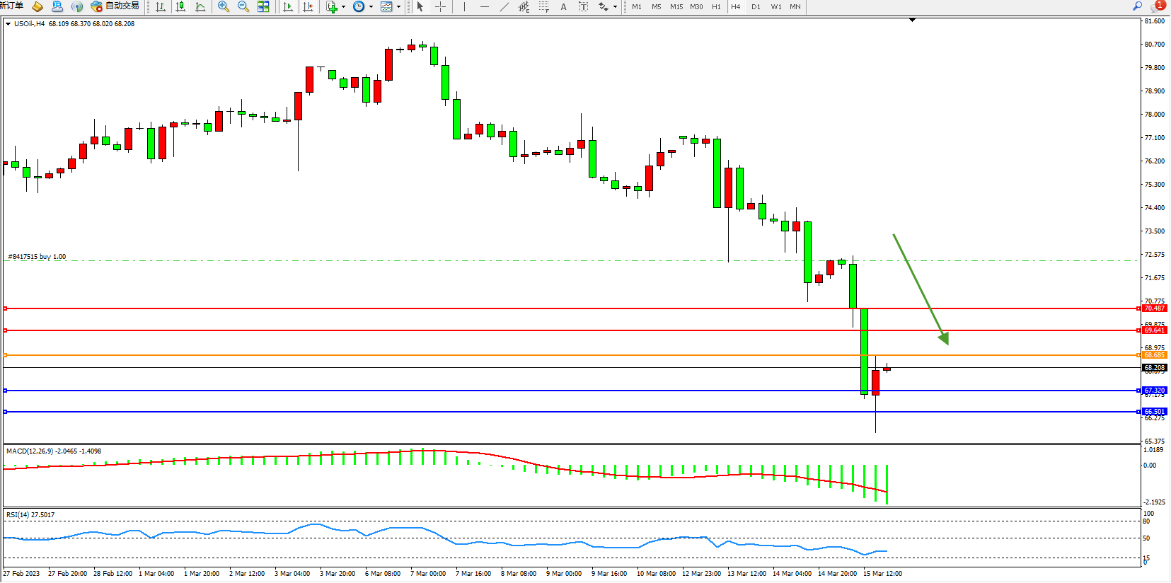 交易策略:68.685下方看跌,目标67.320 66.501