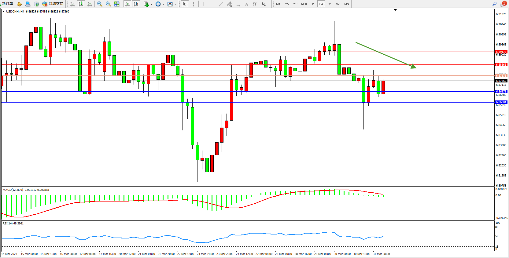 USDCNH:震荡下移