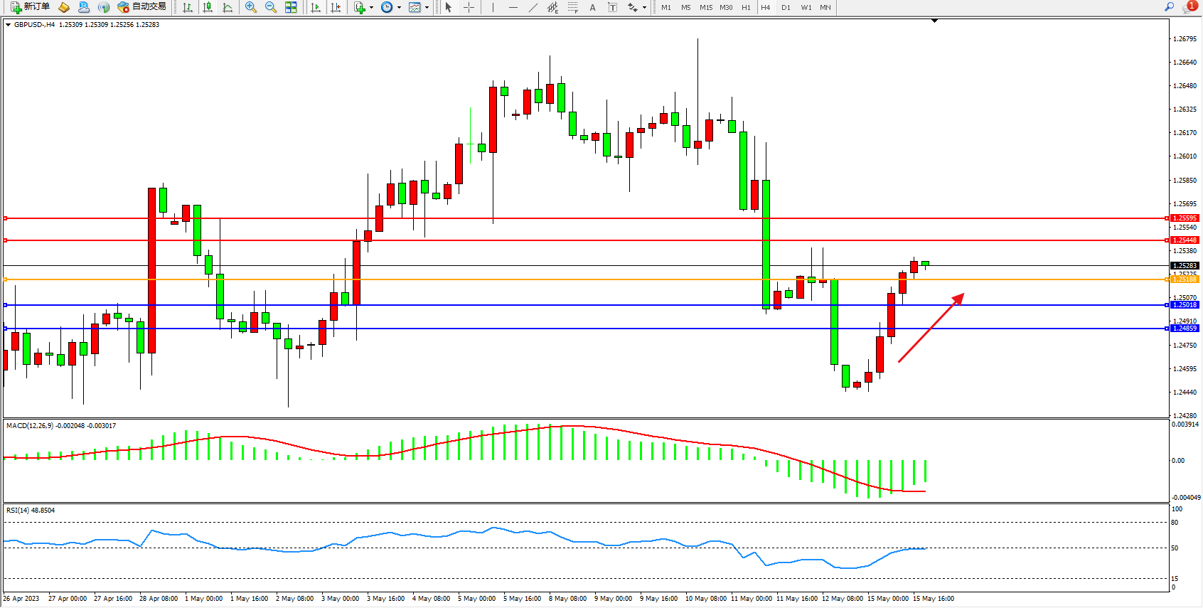 交易策略:1.25188上方看涨,目标1.25448 1.25595