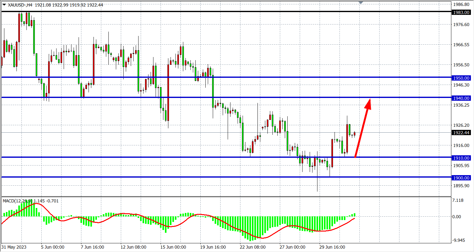 交易策略:1910上方看涨,目标 1940 1950