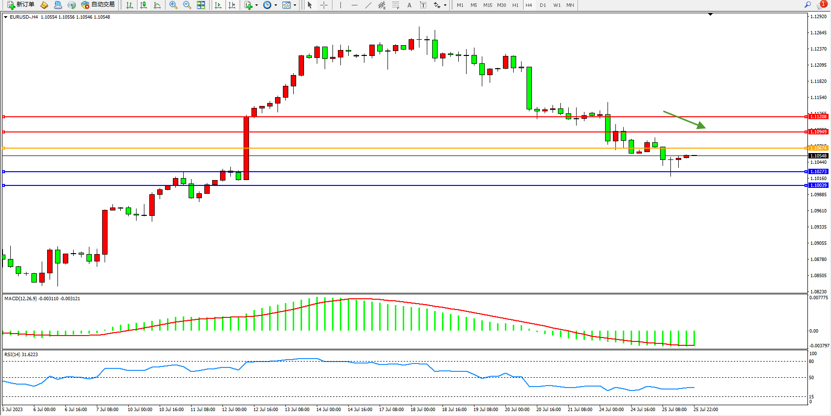 交易策略:1.10674下方看跌,目标1.10273 1.10039
