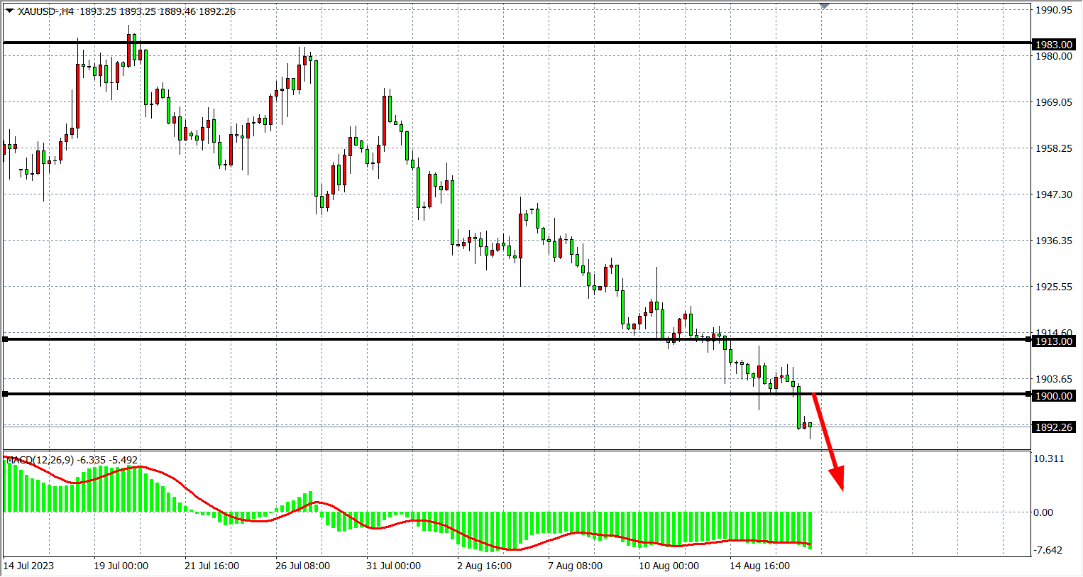 周三(8月16日)美联储会议纪要显示大多数政策制定者继续将抗击通胀放在首位后,同时大多数人认为紧缩政策尚未结束,现货黄金扩大跌幅,跌破前低1893美元,创今年3月以来新低,最终收跌0.49%。
