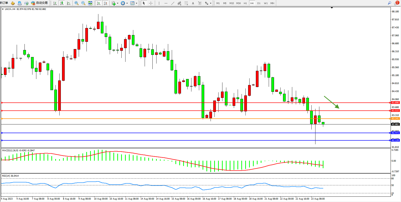 布油UKOil——4小时K线图显示: