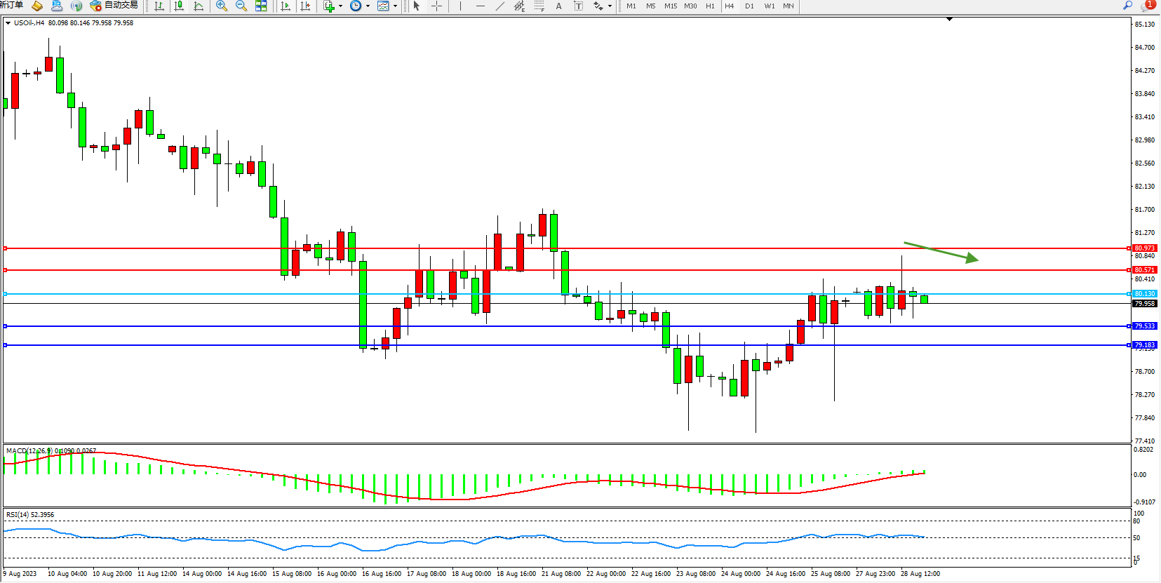 交易策略:80.130下方看跌,目标79.533 79.183