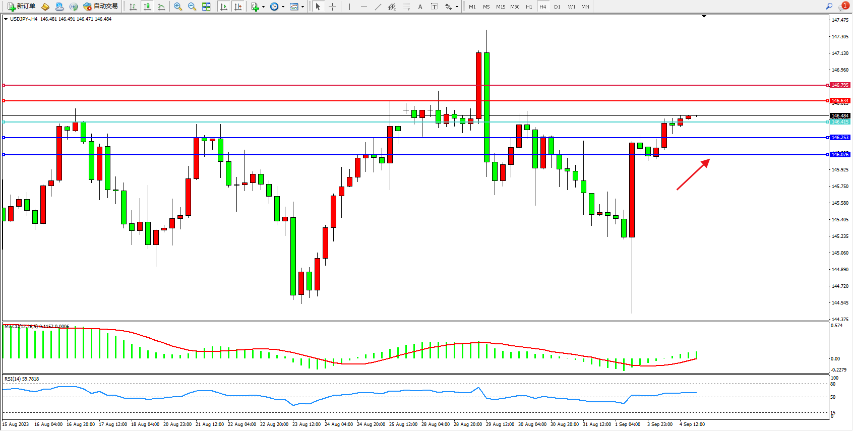 阻力位:146.634  146.795