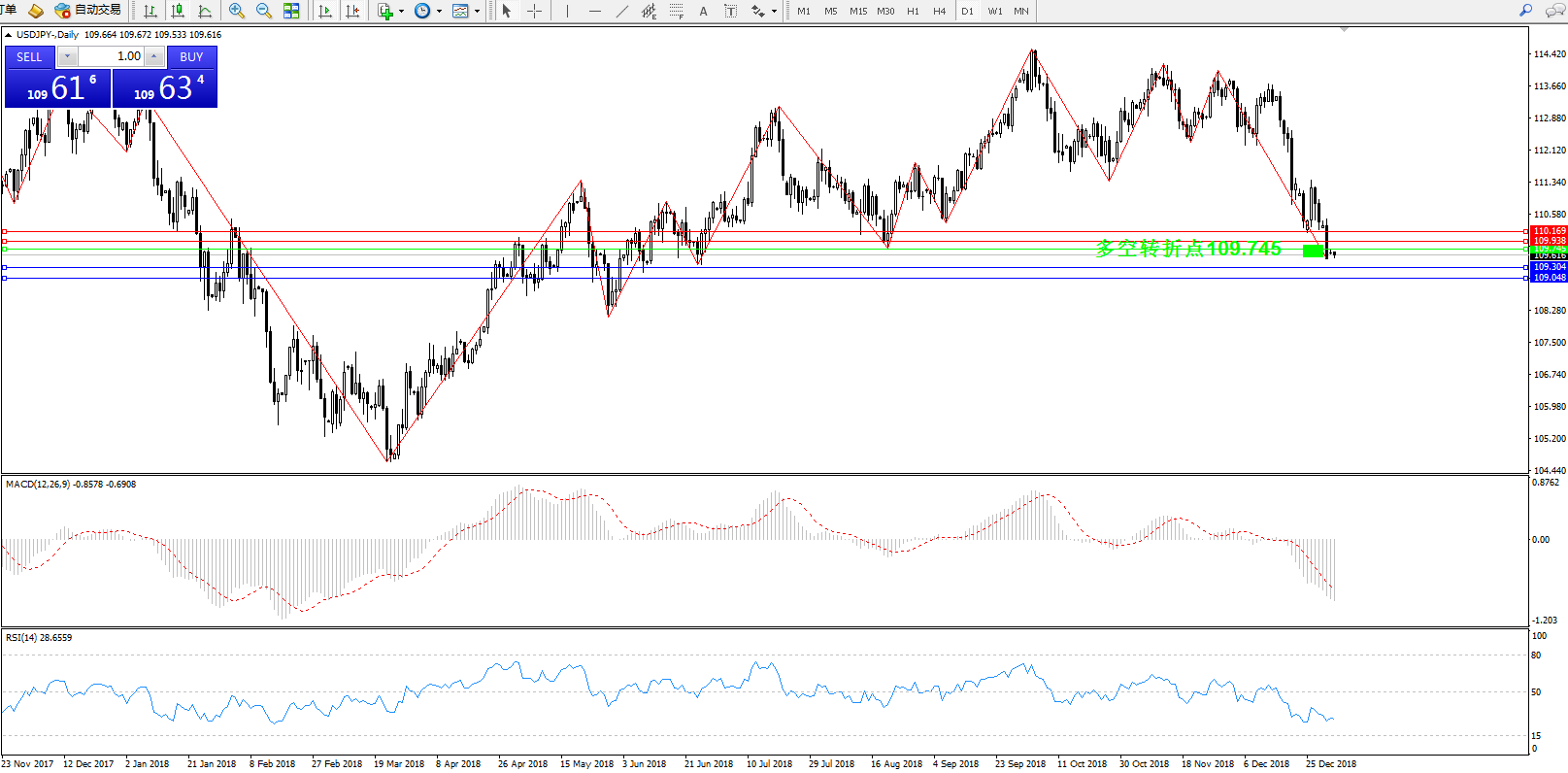 交易策略:109.745下方看跌,目标109.304109.048