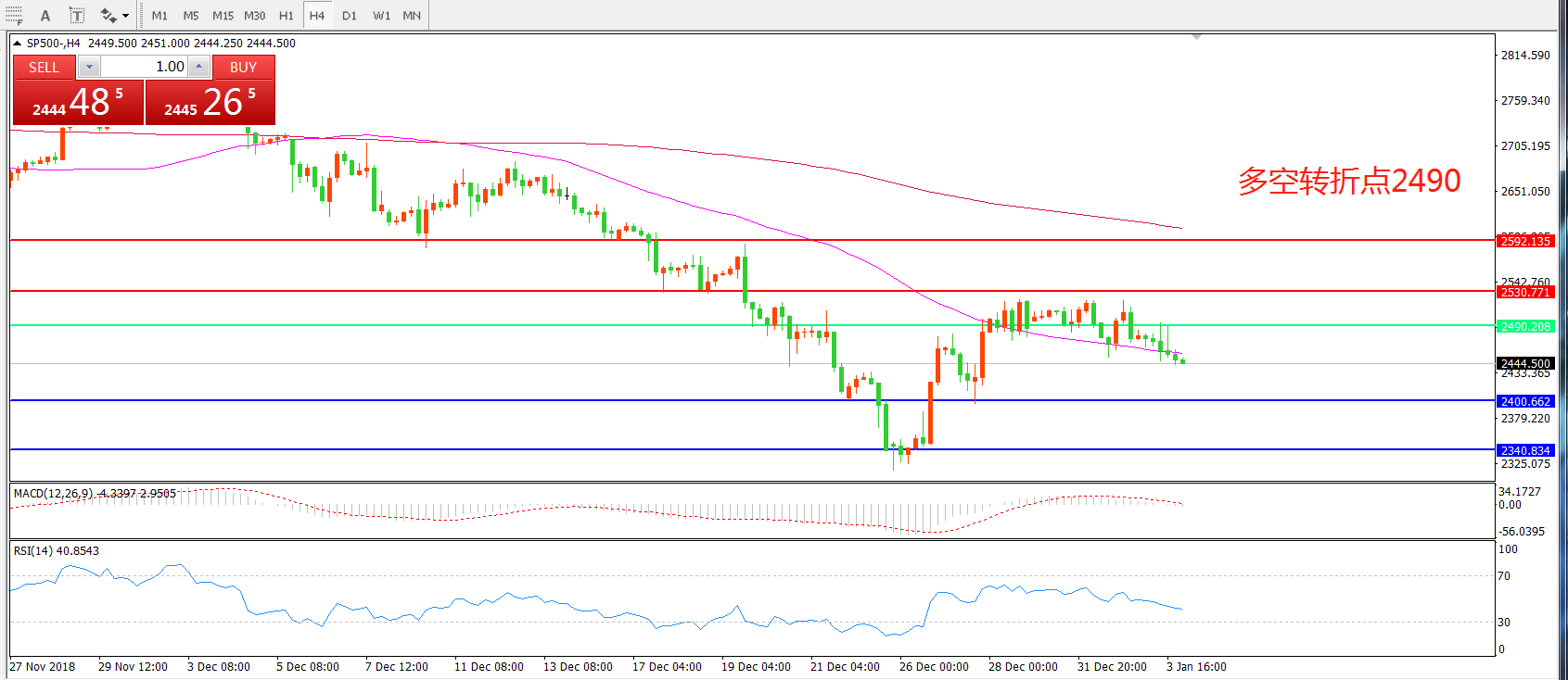 交易策略:在2490之下看跌,目标2400 2340