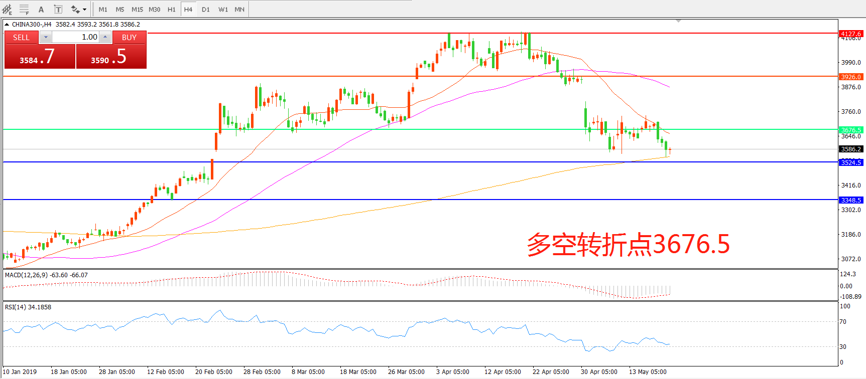 多空转折点:3676.50