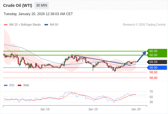在 58.90 之上,看涨,目标价位为 60.00 ,然后为 60.35 。