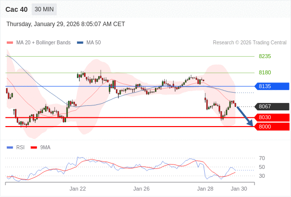 Cac 40 当日内: 存在压力。
