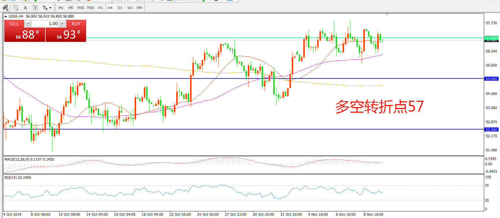 多空转折点:57.00