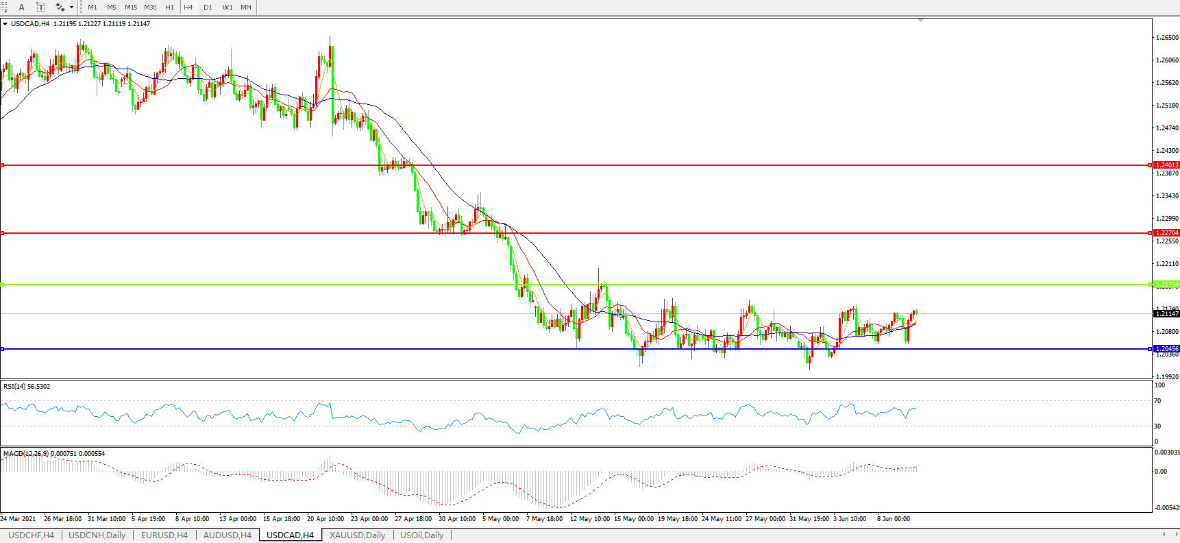 美元兑加元USDCAD    4小时图: