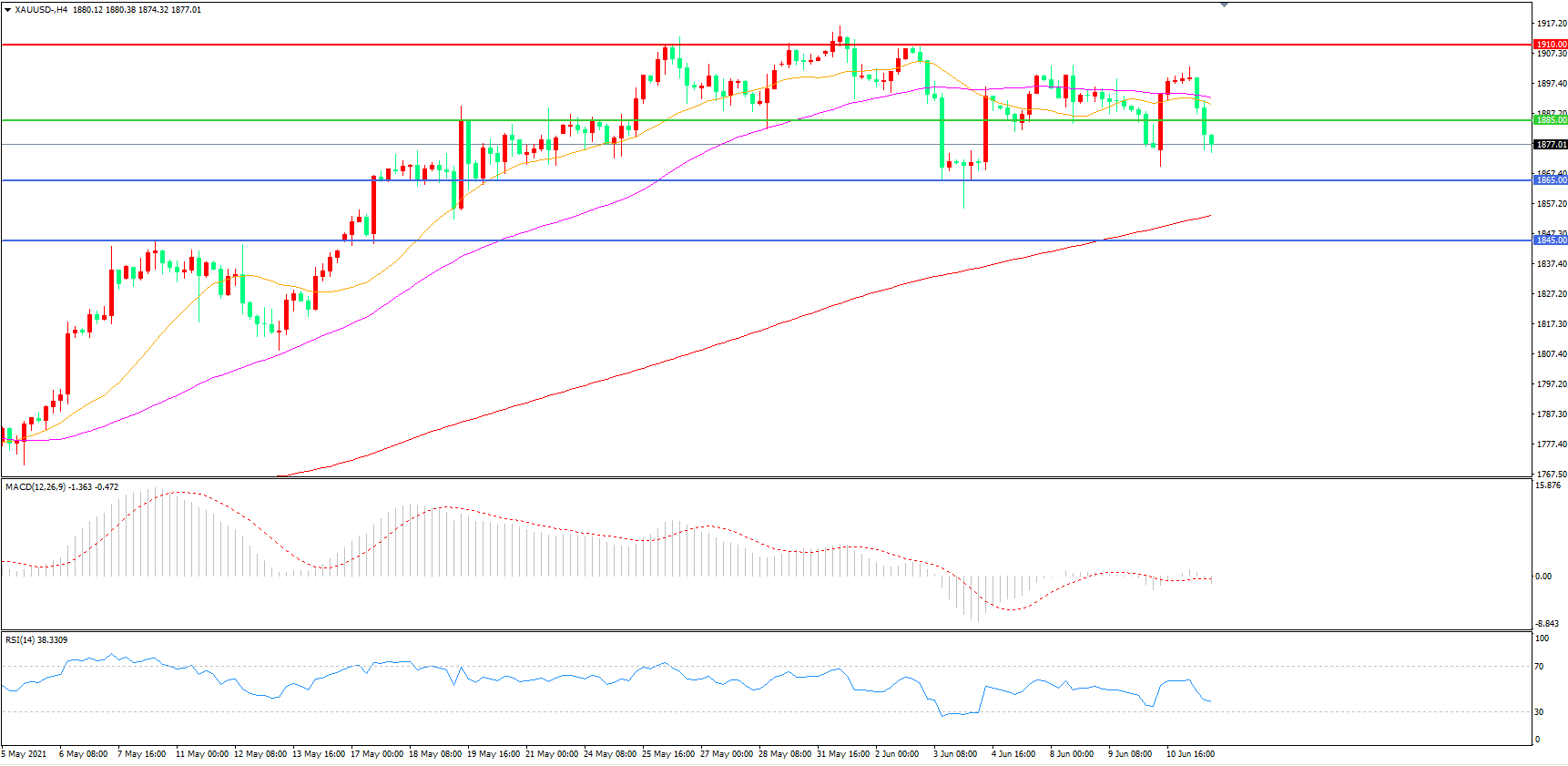 交易策略:在1885.00之上看涨,目标1910.00 1935.00