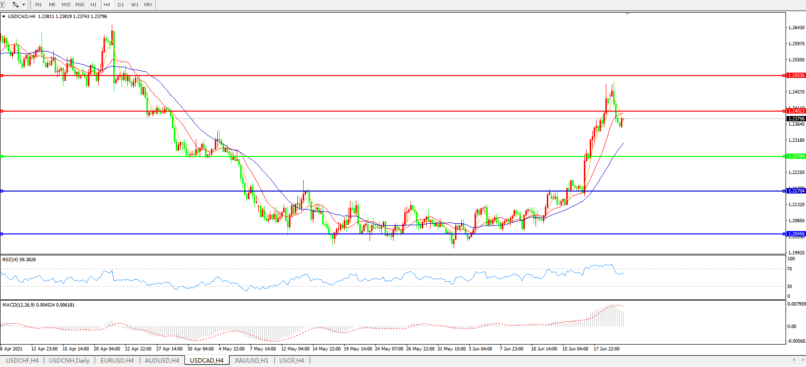 美元兑加元USDCAD 4小时图: