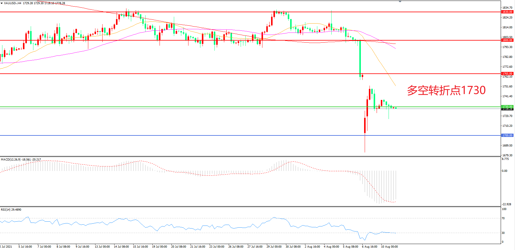 多空转折点:1730.00