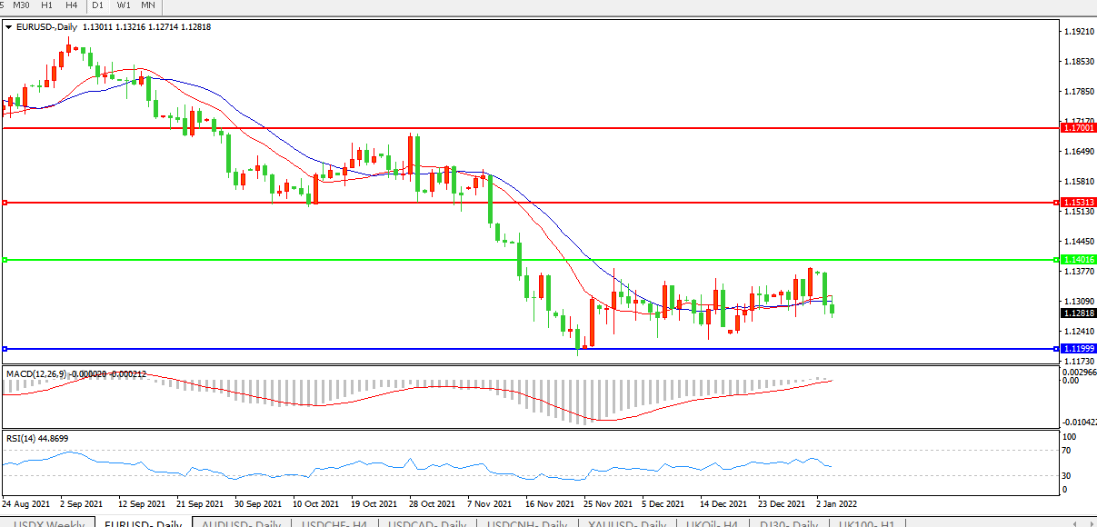 交易策略:1.1400下方看跌,目标1.1200、1.1000