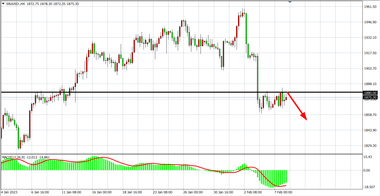 交易策略:在1885.00 之下看跌,目标1860.00         1840.00