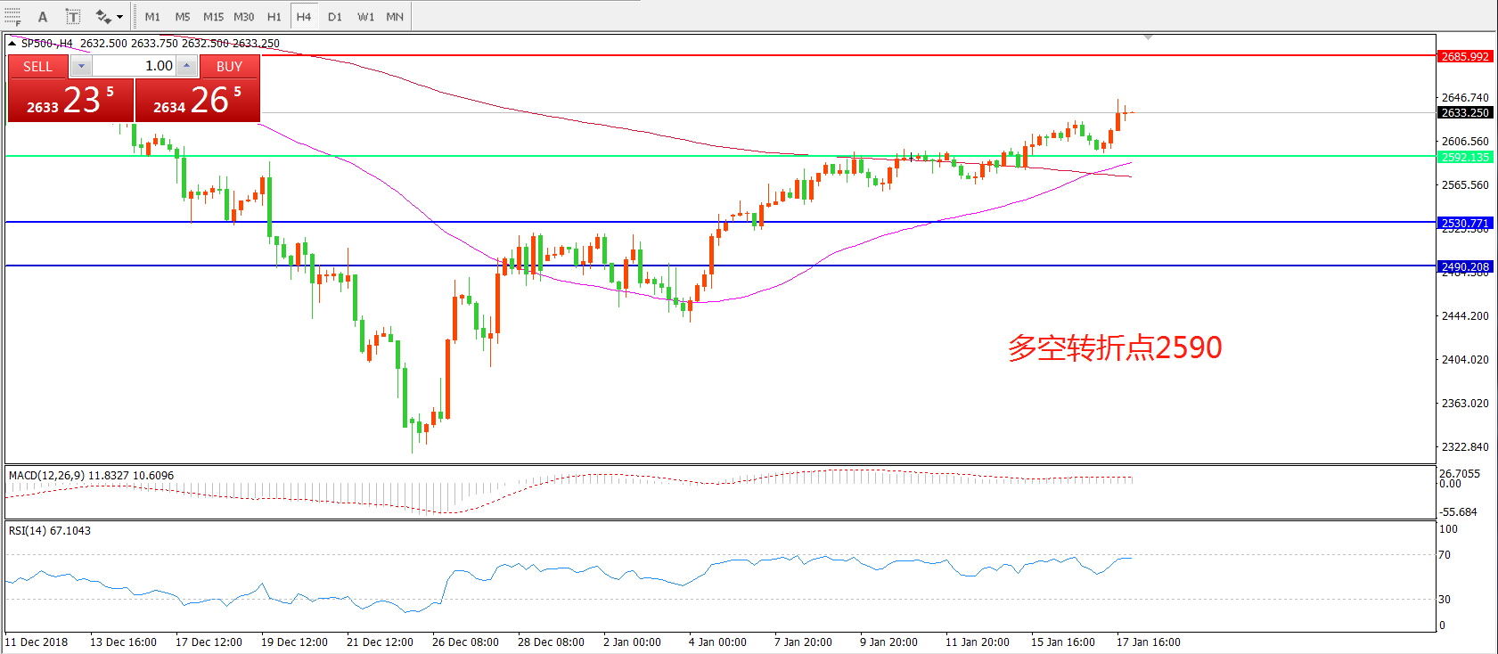 交易策略:在2590之上看涨,目标2685 2780